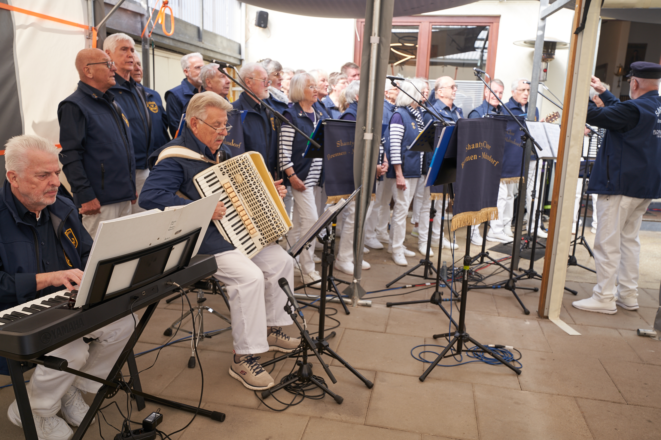 Ebenso möchten wir dem ShantyChor Bremen-Mahndorf herzlich danken, der uns zur Mittagszeit und bis in den Nachmittag hinein mit maritimen Shanty-Gesängen begleitet hat und für eine ganz besondere Atmosphäre gesorgt hat.